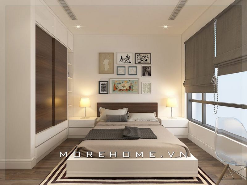 Phòng ngủ nhỏ cần tận dụng diện tích tối đa để bố trí nội thất, giúp căn phòng thêm gọn gàng hơn. Lược bớt những nội thất không liên quan để giúp căn phòng có được độ thông thoáng cần thiết