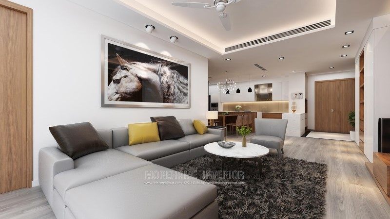 Với không gian phòng khách chung cư, căn hộ lựa chọn chính xác nhất vẫn là thiết kế sofa phong cách hiện đại kiểu dáng văng tiện lợi và thêm phần ấm cúng với vỏ bọc nhung sắc xanh êm ái đầy quyến rũ