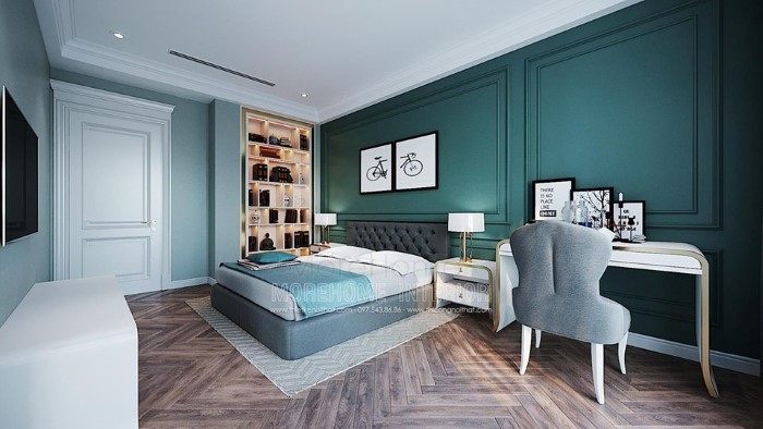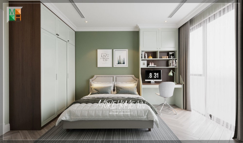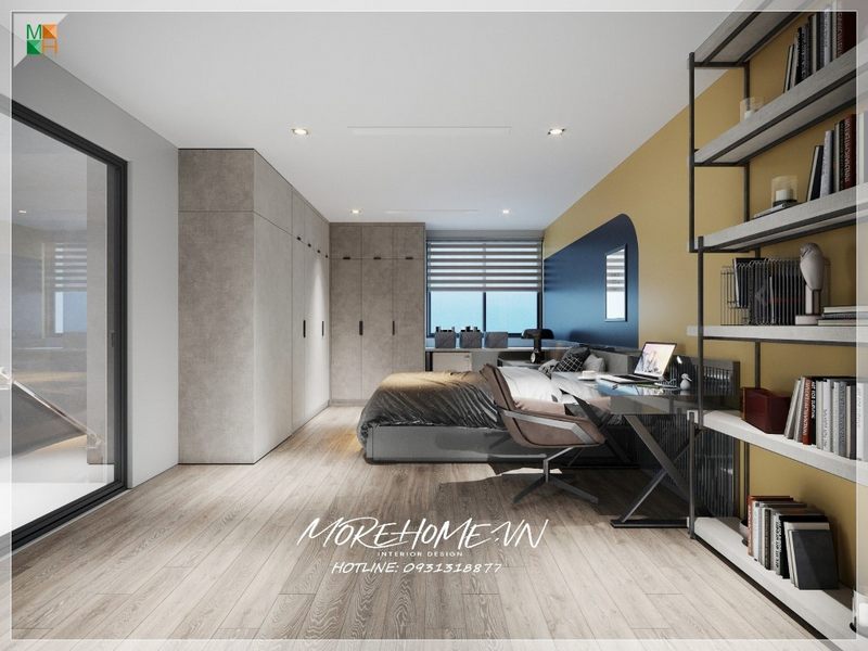 {Thiết kế|trang trí] nội thất phòng ngủ có bàn làm việc hiện đại không gian tiện nghi thoải mái cho sử dụng, không gian riêng thể hiện cá tính gu thẩm mỹ của gia chủ