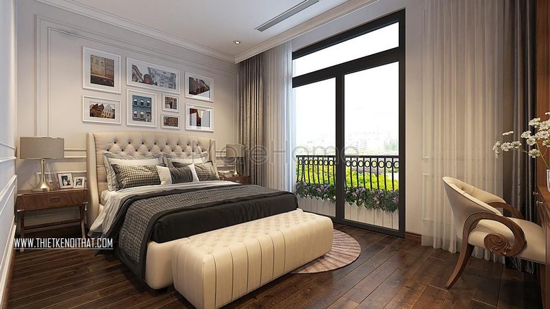 Ngắm nhìn mẫu cửa kính ban công phòng ngủ sang trọng và đẳng cấp đón ánh nắng tự nhiên vào phòng.