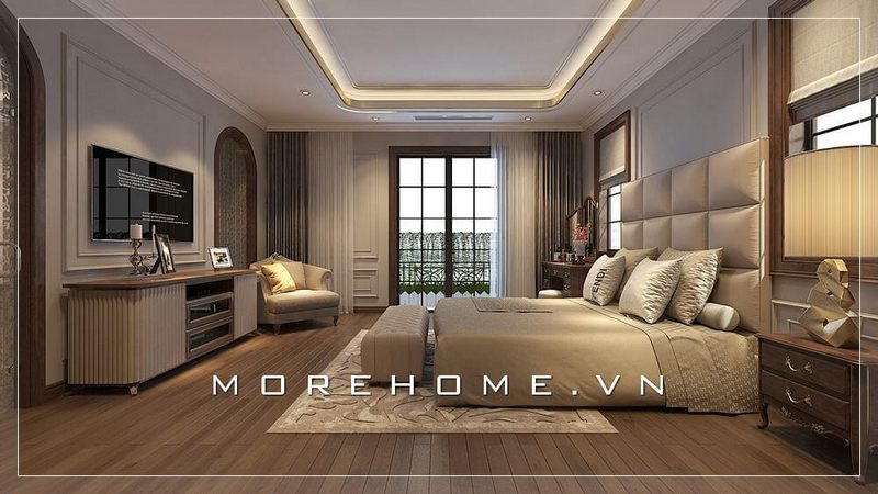 Mẫu giường ngủ bọc da phong cách tân cổ điển được nhiều khách hàng lựa chọn và yêu thích