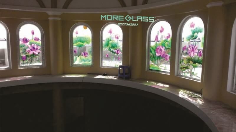 Ấn tượng với mẫu thiết kế cửa sổ cường lực khắc họa tiết hoa sen mang ý nghĩa của sự hoàn hảo, thuần khiết.