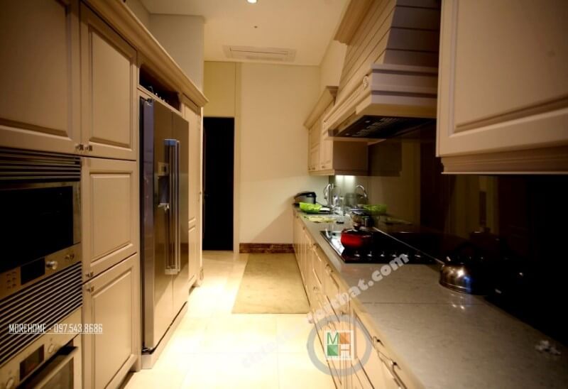 Thiết kế nội thất phòng bếp chung cư cao cấp phong cách hiện đại, sang trọng