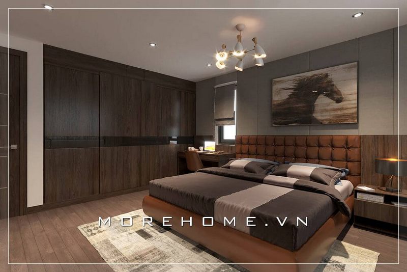 Thiết kế giường ngủ hiện đại với gam màu nâu chủ đạo sẽ khiến không gian nghỉ ngơi của bạn thêm lãng mạn và phá cách vì sắc màu trung tính nhưng không kém phần dịu dàng và sang trọng