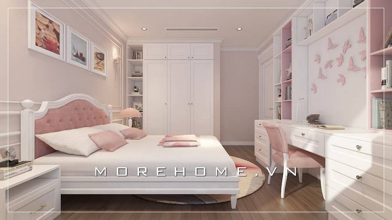 Tủ quần áo kết hợp kệ hở để sách vừa tiện dụng vừa gọn gàng cho phòng ngủ con gái