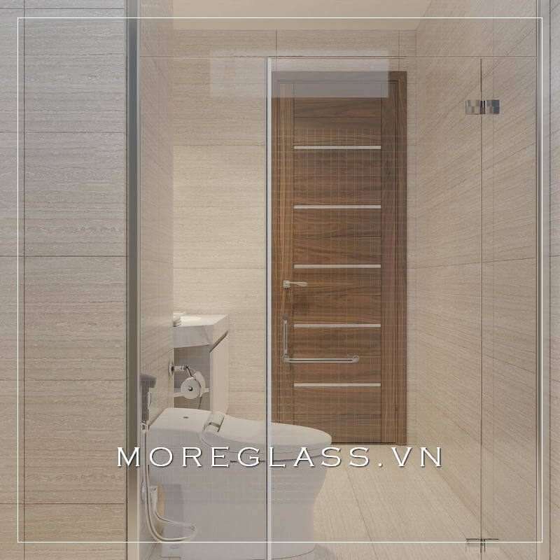 Mẫu cửa gỗ phòng tắm đẹp màu nau sáng với kiểu dáng đơn giản, hiện đại