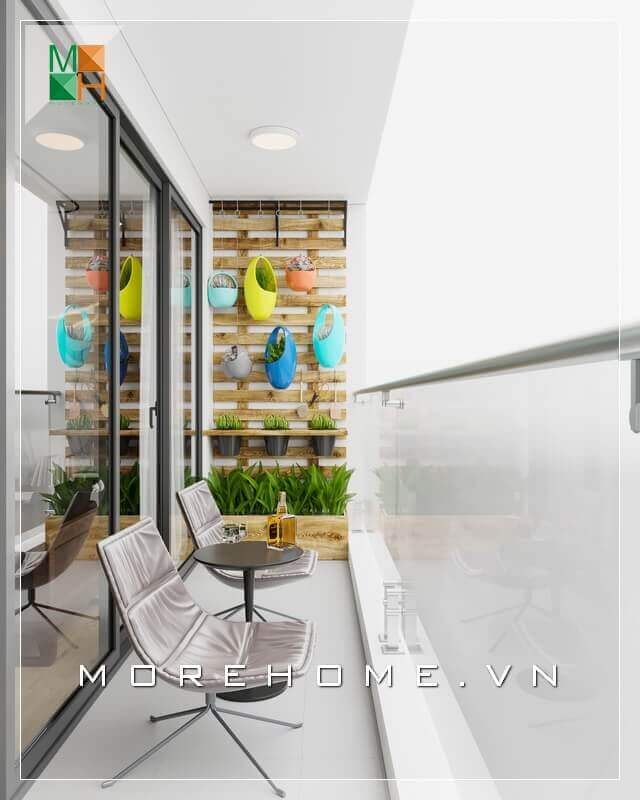 Đẹp mắt với mẫu thiết kế ban công có diện tích nhỏ cho chung cư, nhà phố, biệt thự, với ghế thư giãn màu ghi lạnh tạo cảm giác yên tĩnh, có thể kết hợp với những chậu cây nhiều màu sắc giúp cho không gian ban công thêm trẻ trung, hiện đại